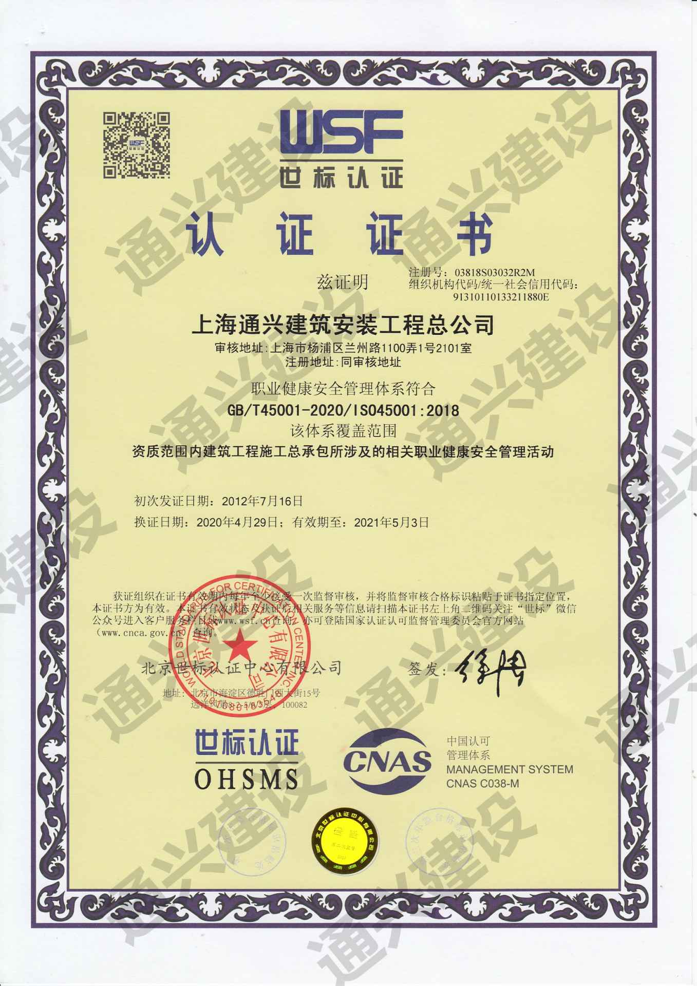 职业健康安全管理体系认证